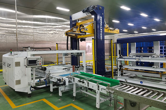 ③ 自動完成進(jìn)箱、轉(zhuǎn)箱、分排、成堆、移堆、提堆、進(jìn)托、下堆、出垛等步驟;