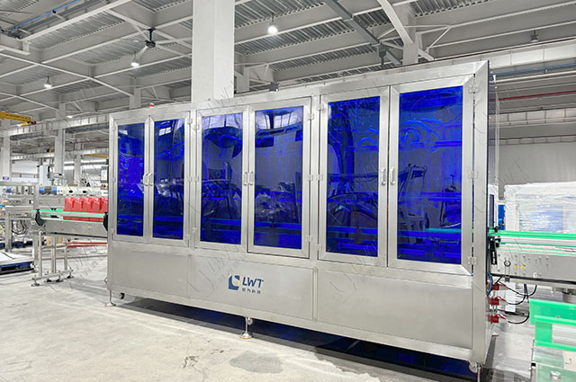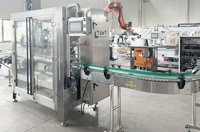 灌裝——旋蓋——稱重檢測——膜包收縮——機器人碼垛——纏繞
