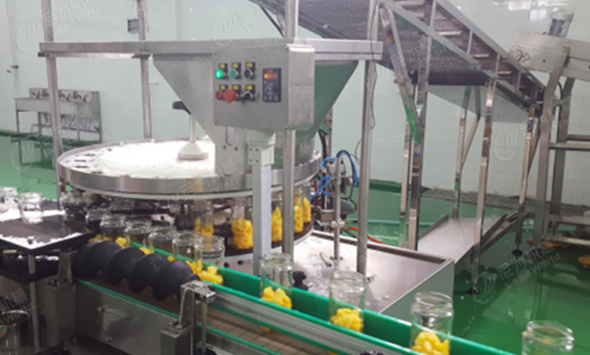 河北水果罐頭生產(chǎn)線項(xiàng)目包含前處理設(shè)備(從原料供應(yīng)至淋堿去皮)—挑選線—自動(dòng)卸垛機(jī)(玻璃瓶)--自動(dòng)洗瓶機(jī)--自動(dòng)罐裝機(jī)—自動(dòng)碼垛機(jī);該產(chǎn)線由尼為提供整套生產(chǎn)布局;
